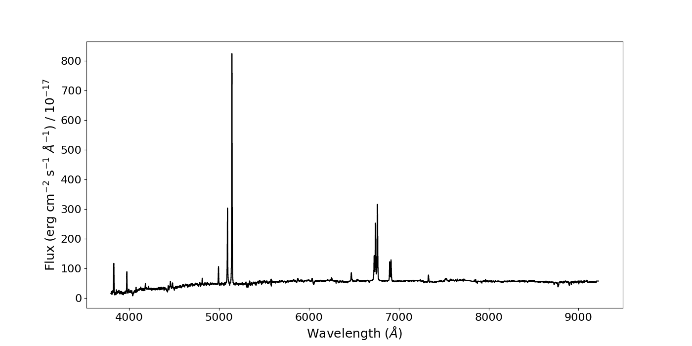In this tutorial, I will show you how to fit emission lines in an SDSS active galaxy spectrum, and how the resulting line fluxes and ratios can be used to derive the electron density of the gas. It is important to note that the focus here is on giving a basic introduction to fitting lines and producing line fluxes - in reality, care must be taken when fitting emission lines (as they may require complex modelling with multiple components) and when measuring real electron densities (see Holden et al. 2023).