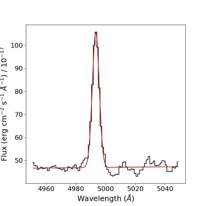 That is thus the line flux (and associated uncertainty) of the Hβ line in our spectrum. Lets now repeat the entire process, but this time for the [SII]λλ6717,6731 doublet.